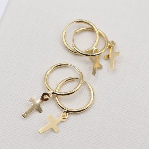 candonga estampada oro 18 kilates pequeñas, peso de 1.1gr y diametro 1cm.