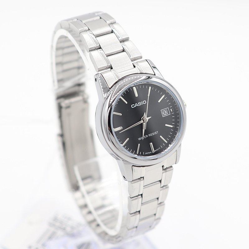Este reloj Casio análogo para mujer destaca por su diseño sobrio y refinado. Su carátula negra minimalista ofrece una lectura clara gracias a sus marcadores plateados y manecillas delgadas. La caja de tamaño pequeño y la correa de acero inoxidable lo convierten en una opción ideal para el uso diario, sin perder elegancia.