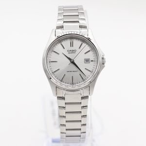Este reloj Casio análogo para mujer combina elegancia y funcionalidad en un diseño atemporal. Su carátula plateada con acabado metálico brinda un estilo sobrio y refinado, perfecto para cualquier ocasión.