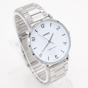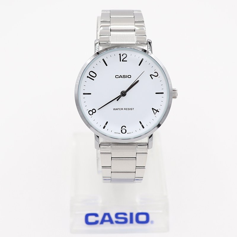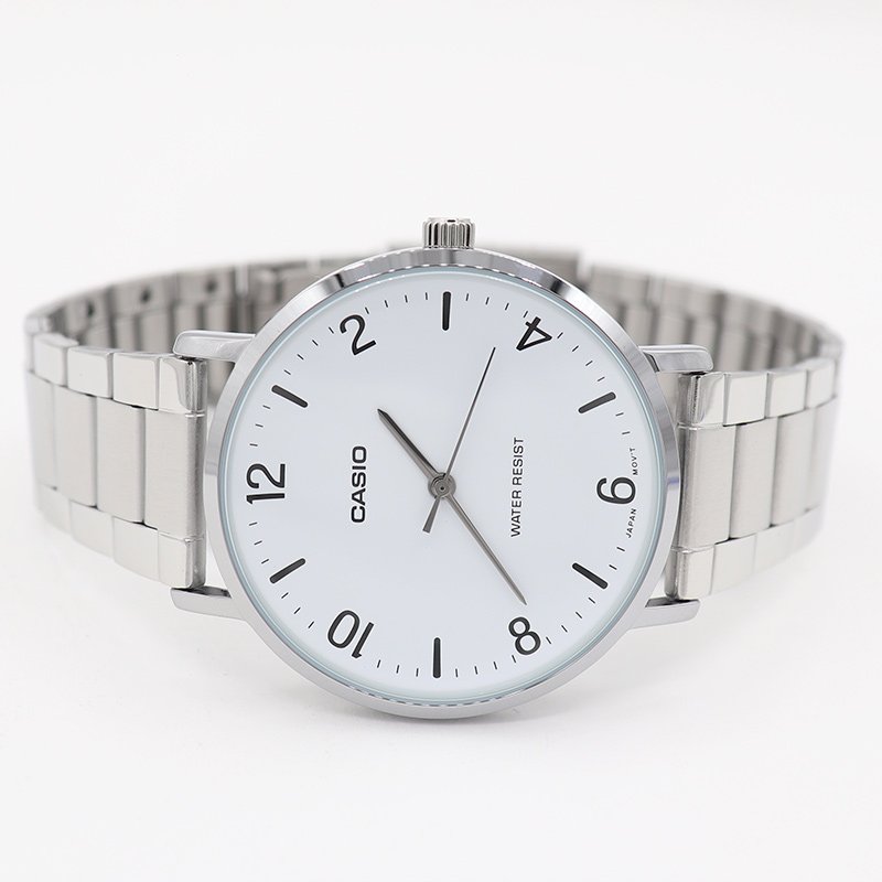 Este reloj Casio es el equilibrio perfecto entre elegancia y simplicidad. Con una carátula blanca limpia y marcadores negros, ofrece una lectura fácil y rápida de la hora. Su diseño minimalista se complementa con una correa metálica que le da un toque sofisticado, ideal tanto para la oficina como para ocasiones formales.