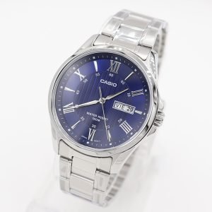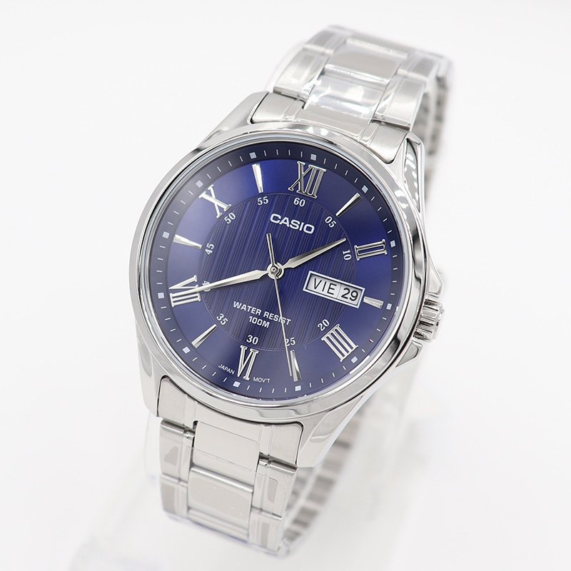 Este reloj Casio para hombre ofrece una combinación perfecta entre elegancia y funcionalidad. Su carátula azul profundo con números romanos le da un toque clásico, mientras que su brazalete de acero inoxidable añade durabilidad y estilo. Equipado con indicador de día y fecha, es resistente al agua hasta 100 metros, ideal tanto para el trabajo como para ocasiones especiales.