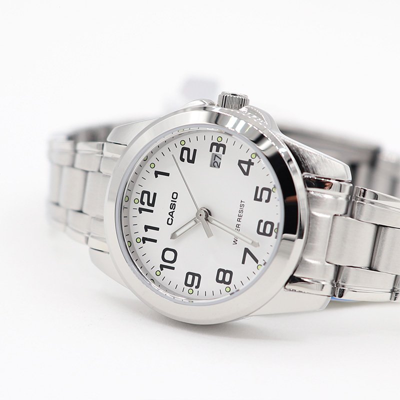 Este reloj Casio para mujer destaca por su diseño práctico y elegante. Con una carátula blanca de gran visibilidad y números en color negro, permite una lectura clara de la hora. El brazalete de acero inoxidable lo hace duradero y adecuado para cualquier ocasión. Cuenta con fechador y resistencia al agua, siendo una excelente opción para el día a día.