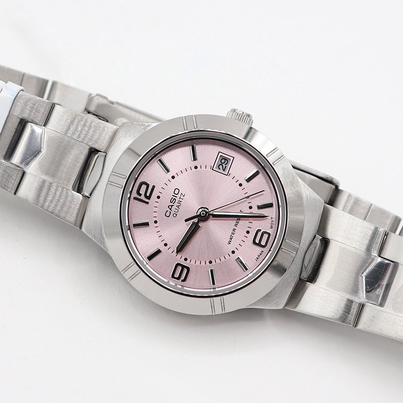 Este reloj Casio para mujer combina un diseño clásico con un toque moderno gracias a su delicada carátula en tono rosa. Su estructura de acero inoxidable brinda durabilidad y un acabado elegante que lo hace ideal para el uso diario o eventos especiales. Su diseño compacto, con marcadores sencillos y números arábigos, lo convierten en un accesorio fácil de leer y muy cómodo de llevar.